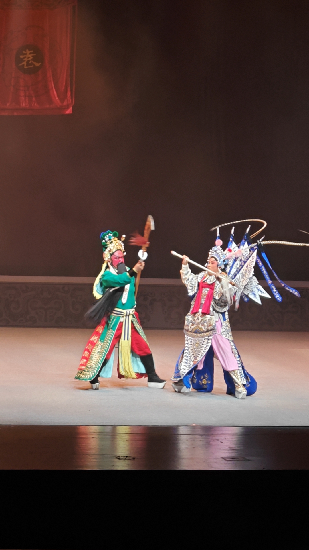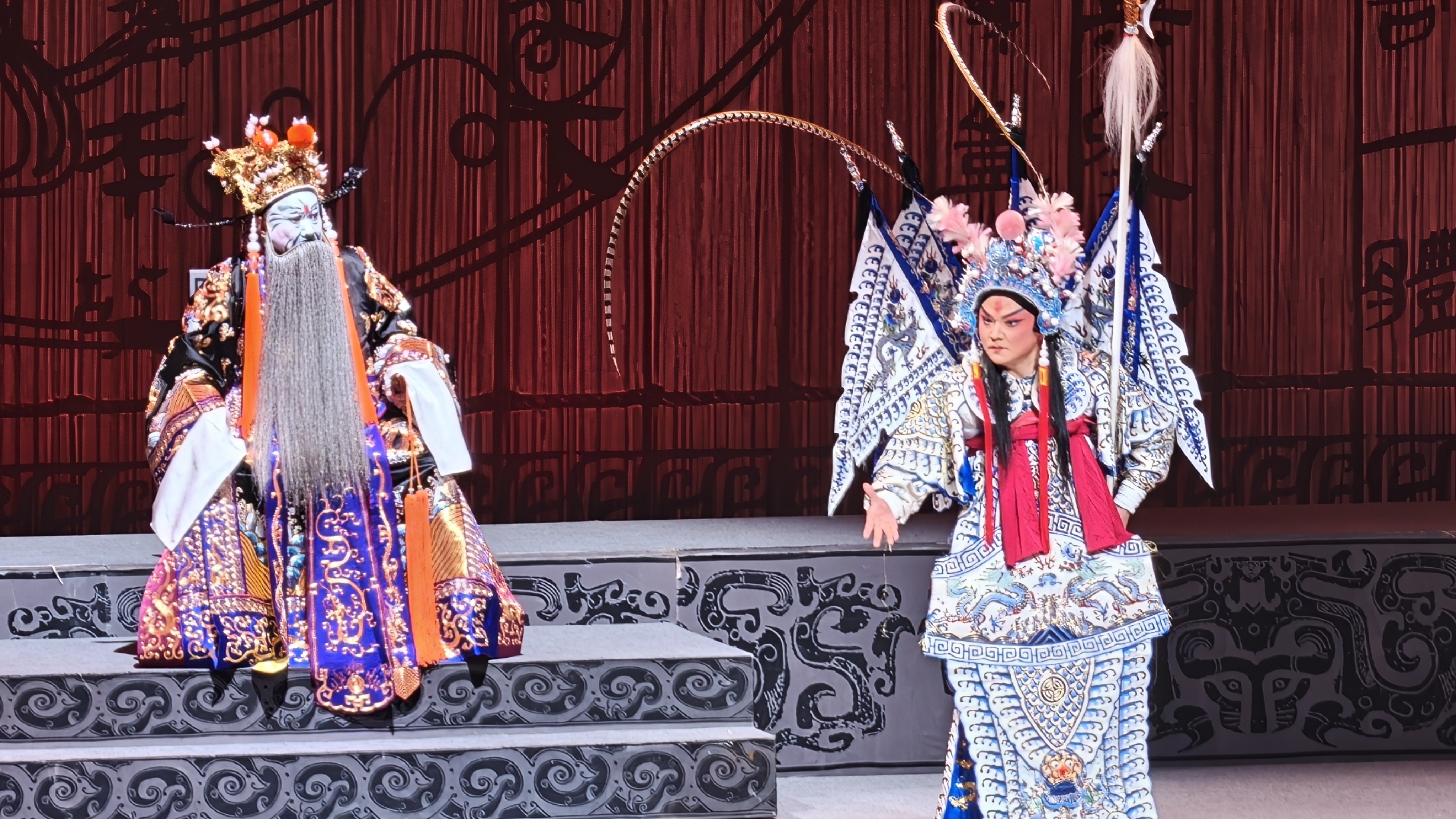 除了主角们的精彩演绎,四川艺术作事学院师生同台的副角发达相似引东谈主介意。举例,年青学子的翻跟头本事,便赢得了不雅众阵阵喝彩。退休教授补强,手脚“关羽”的饰演者,也展现了川剧“红生戏”的私有魔力。在“三英战吕布”情节中,他以整场上演的前奏剧情亮相,活泼呈现了关羽挥舞青龙偃月刀的武戏时局。提刀式、抱刀式等传统刀技的欺骗,大大增强了剧标的不雅赏性。“红生戏主要演绎的即是关羽的故事。”补强暗示,“脸上的妆容维握了老辈艺东谈主的经典状貌,红色脸谱标记着忠义,额间似火的纹样则突显了变装的英武霸气。”