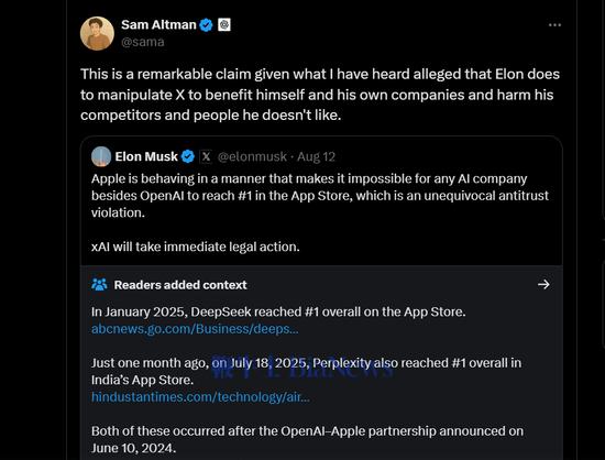 5、2025年8月,告状苹果和OpenAI涉嫌把持,通过”反竞争妙技“来打压AI竞争敌手,宣称苹果在App Store排行中偏向OpenAI,并缩短xAI的应酬媒体应用X和Grok的优先级。