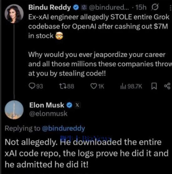 马斯克在X平台上大怒质问,李学晨在下野前下载了xAI的所有代码库!登录日记讲解了这少许,而他也承认了!